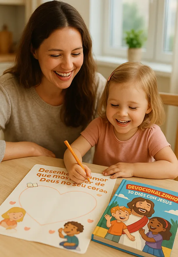 Mais de 30 dias de atividades, versículos, desafios e reflexões para ajudar seu filho a conhecer Jesus de forma leve, divertida e inesquecível — mesmo com a correria do dia a dia!